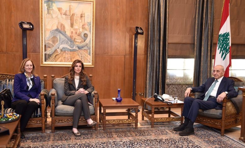 إستقبل رئيس مجلس النواب نبيه بري في مقر الرئاسة الثانية في عين التينة نائبة الموفد الامريكي للشرق الاوسط مورغان أورتاغوس والوفد المرافق بحضور السفيرة الامريكية ليزا جونسون والمستشار الإعلامي للرئيس بري علي حمدان حيث جرى عرض للأوضاع العامة في لبنان لاسيما الوضع الميداني في الجنوب على ضوء إمعان اسرائيل جرياً على عادتها في خرق القرار الأممي 1701 وإتفاق وقف إطلاق النار عبر إستمرارها إحتلال اجزاء من الاراضي اللبنانية وحرقها ونسفها لعشرات المنازل وتجريف الأراضي الزراعية إضافة لشن طيرانها الحربي والمسير عشرات الغارات الجوية مستهدفاً مناطق لبنانية عدة.