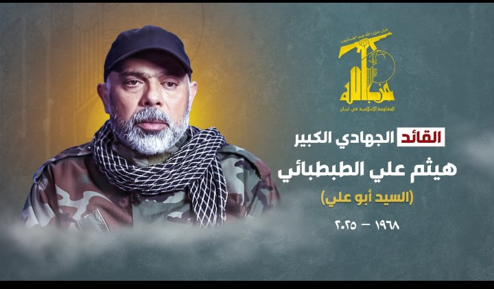 بكل فخر واعتزاز يزف حزب الله إلى أهل المقاومة وشعبنا اللبناني القائد الجهادي الكبير الشهيد هيثم علي الطبطبائي (السيد أبو علي) الذي ارتقى شهيدًا فداءً للبنان وشعبه إثر عدوان إسرائيلي غادر على منطقة حارة حريك في الضاحية الجنوبية لبيروت.